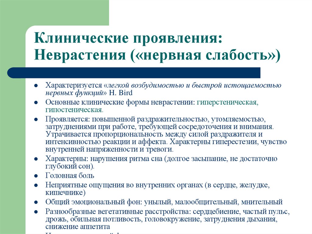Неврастения – самостоятельно присутствует в МКБ 10 (Невротические, связанные