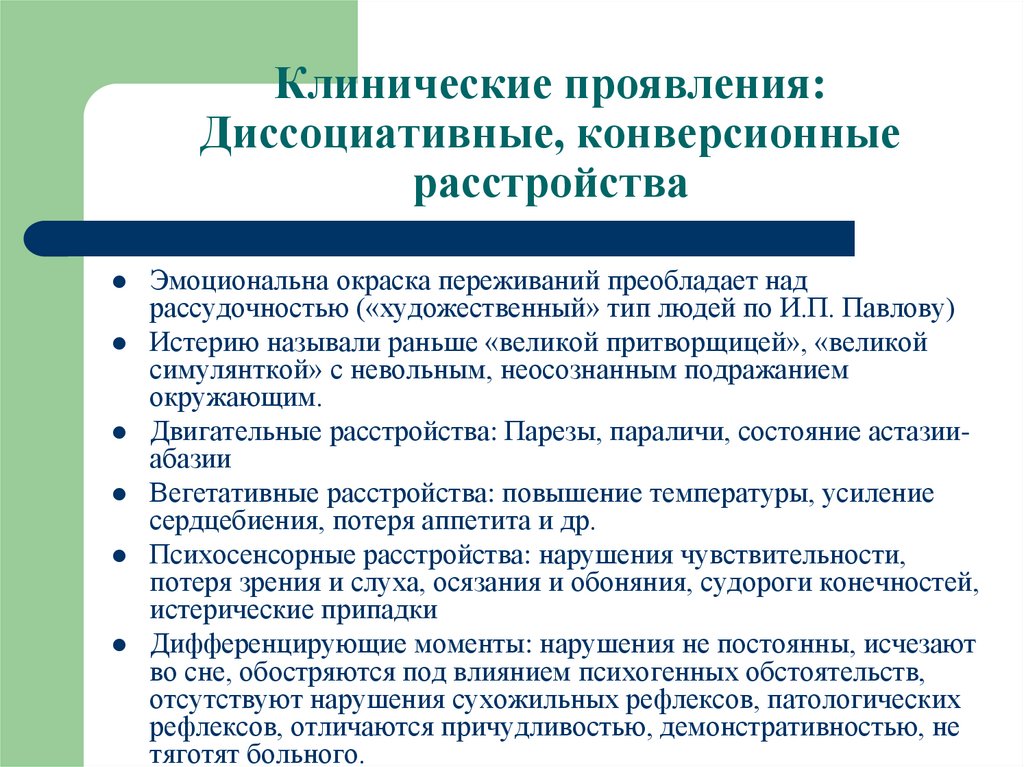 Истерические расстройства диссоциативного типа рассматривается в рубрике