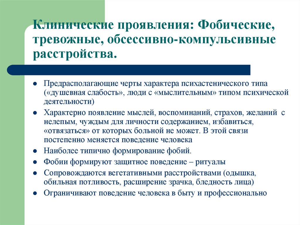 Используется клиническая систематика: тревожнофобические (включая обсессивно-компульсивные)