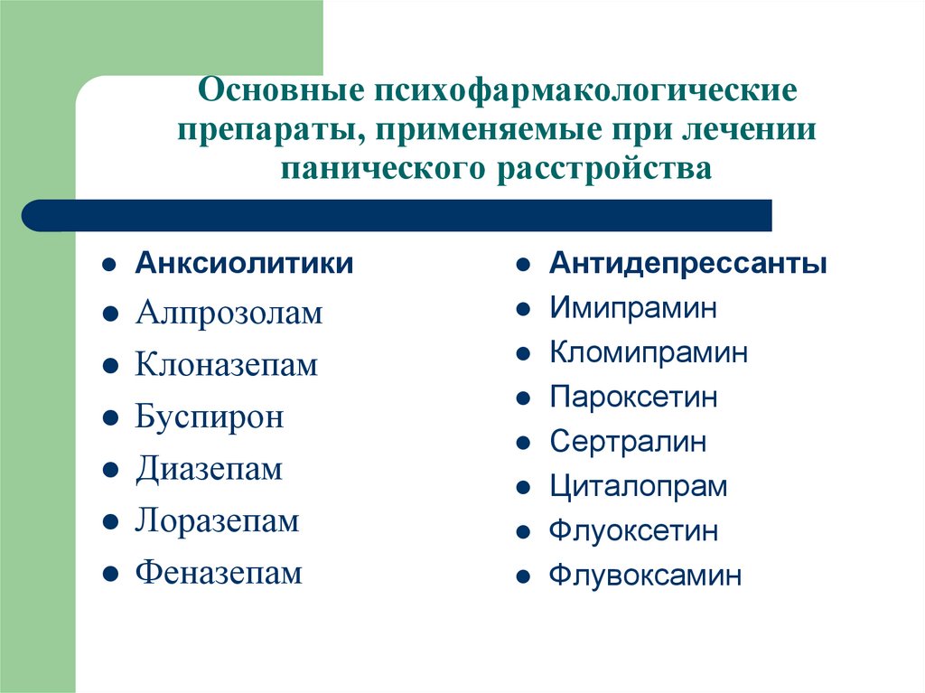 27. Основные психофармакологические препараты, применяемые при лечении панического расстройства