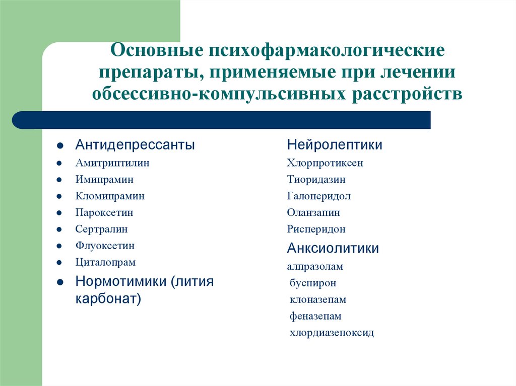 28. Основные психофармакологические препараты, применяемые при лечении обсессивно-компульсивных расстройств