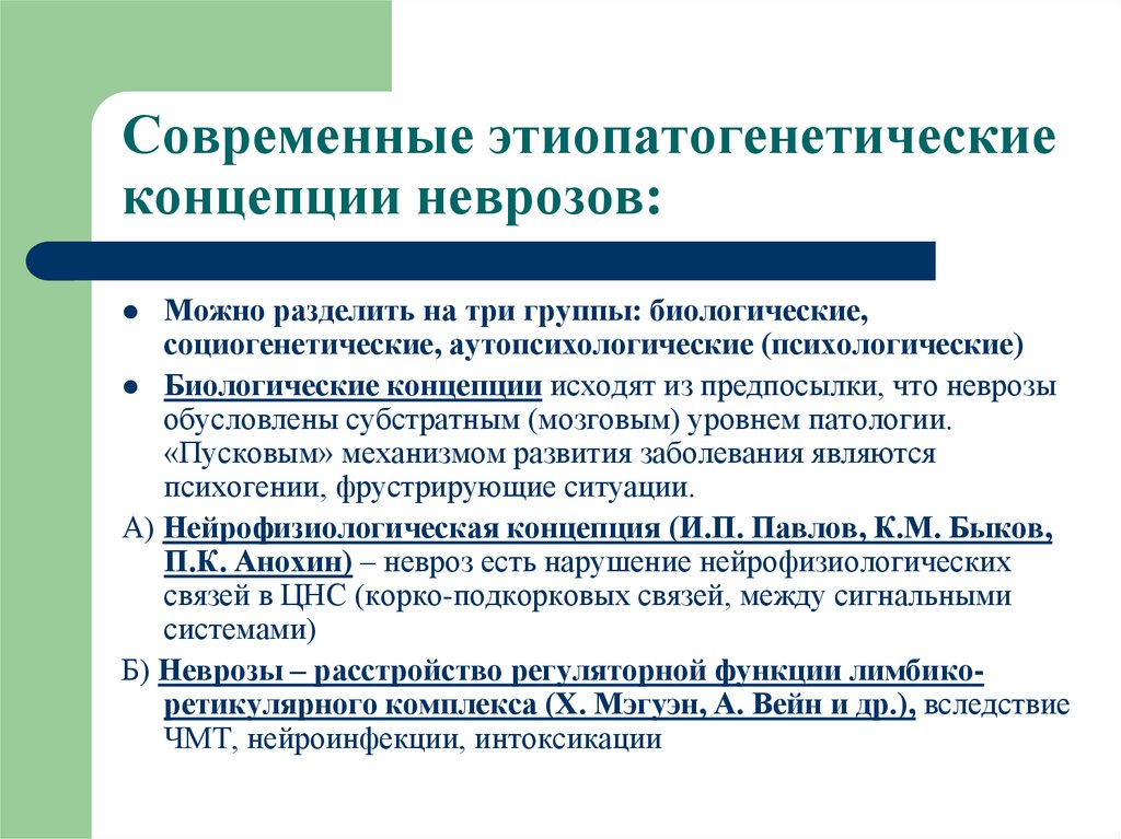 П.К. Анохин) – невроз есть нарушение нейрофизиологических