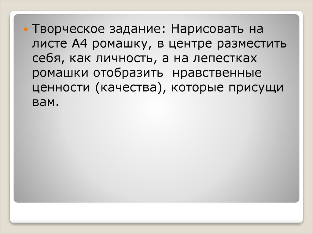 Творческое задание: Нарисовать налисте А4 ромашку, в центре разместить