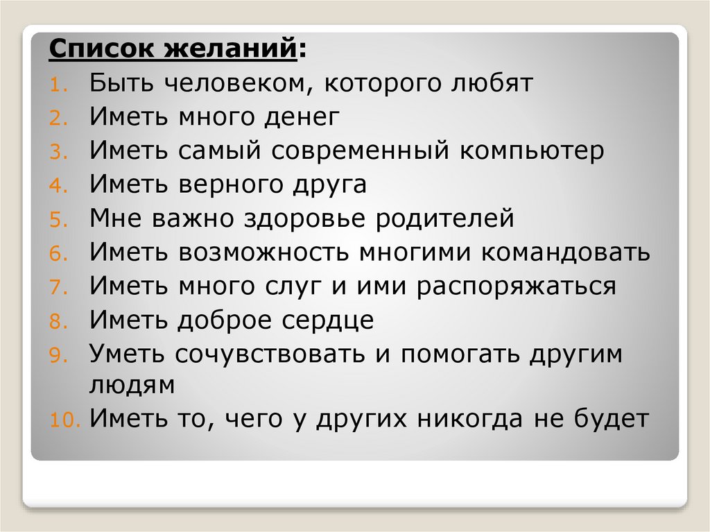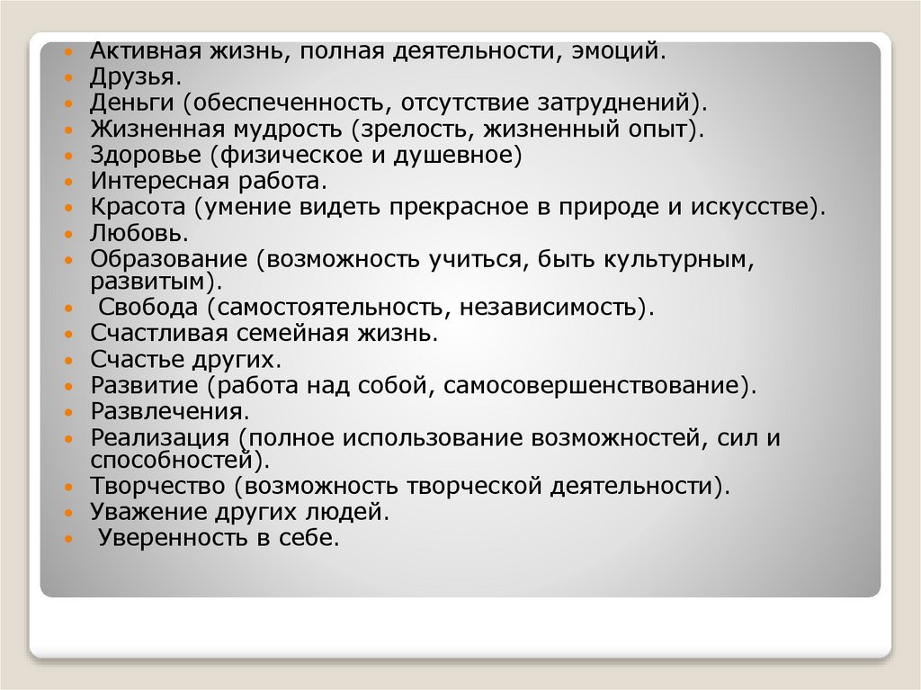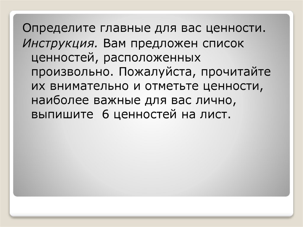 Определите главные для вас ценности.Инструкция. Вам предложен список