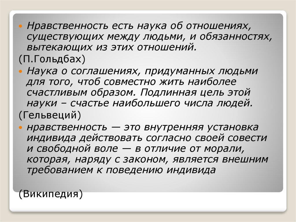 Нравственность есть наука об отношениях,существующих между людьми, и обязанностях,