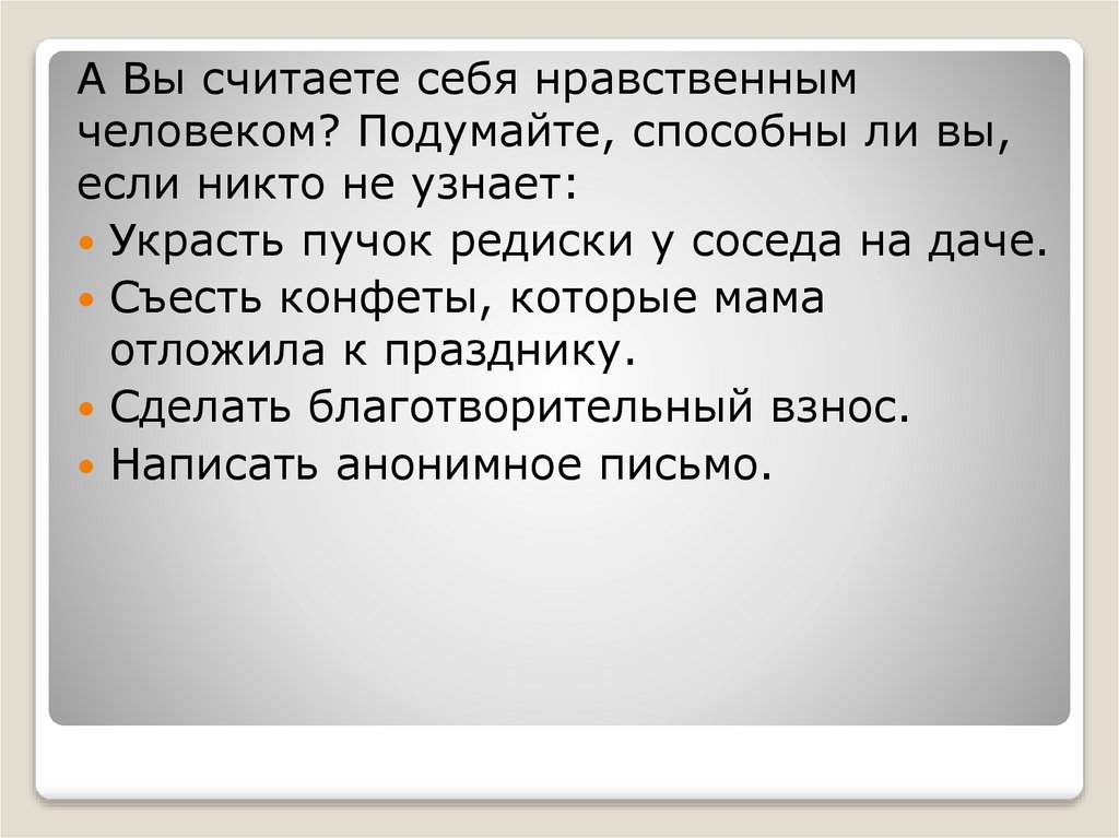 А Вы считаете себя нравственнымчеловеком? Подумайте, способны ли вы,