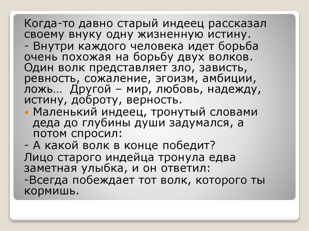 Когда-то давно старый индеец рассказалсвоему внуку одну жизненную истину.