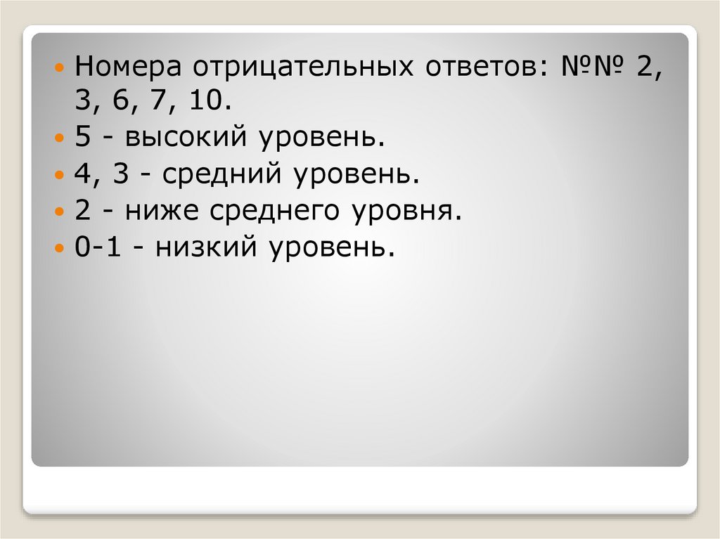 Номера отрицательных ответов: №№ 2,3, 6, 7, 10.