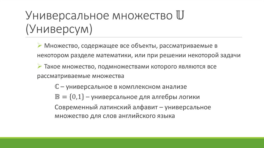 МножествоСовокупность элементов, объединённых общим свойством, но