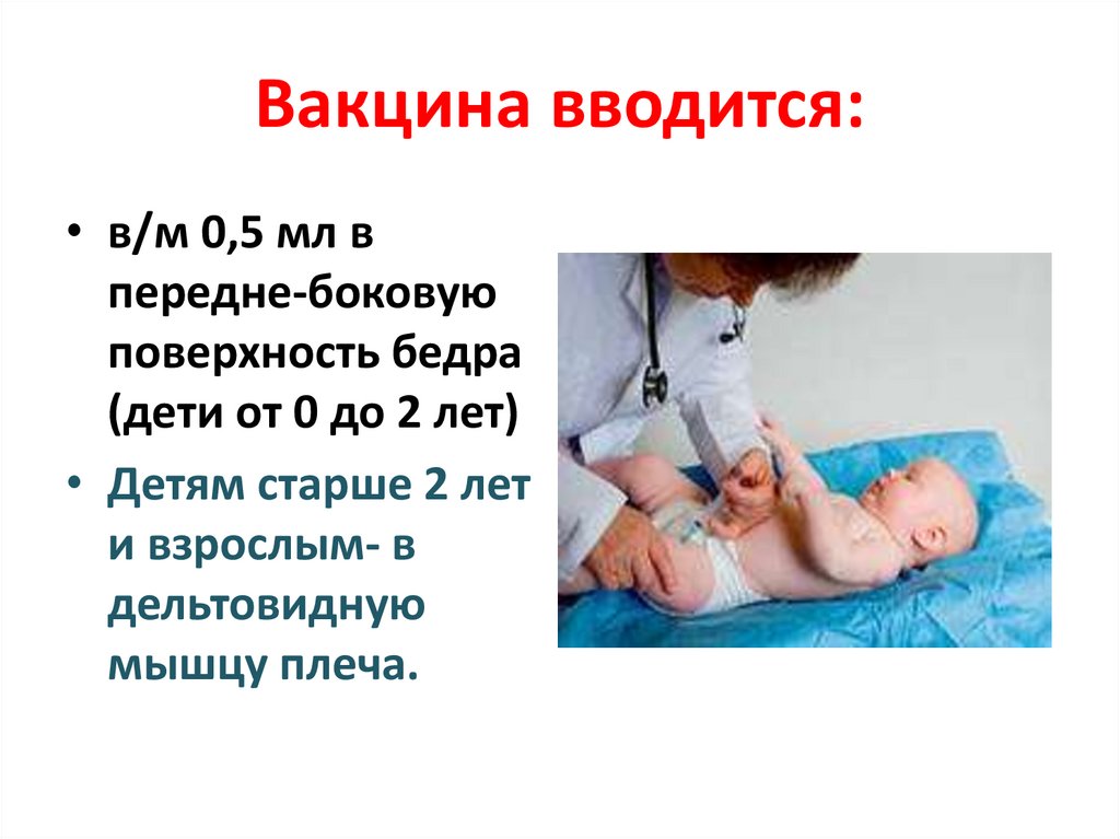 Вакцина вводится:• в/м 0,5 мл в