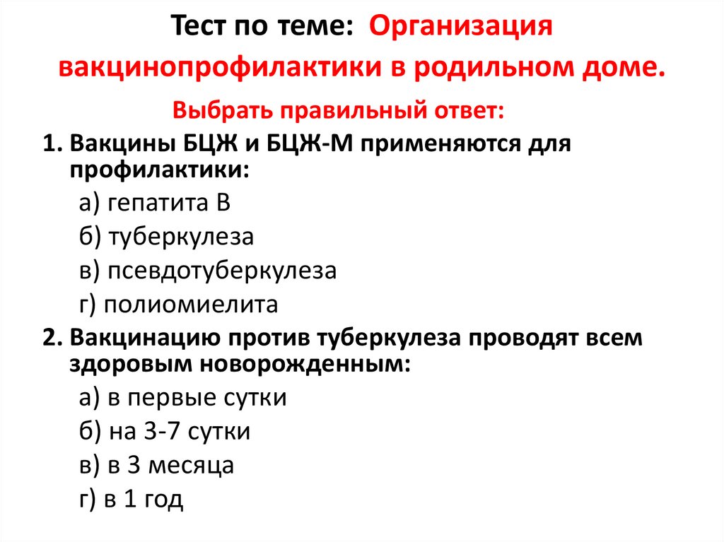 Тест по теме: Организациявакцинопрофилактики в родильном доме.
