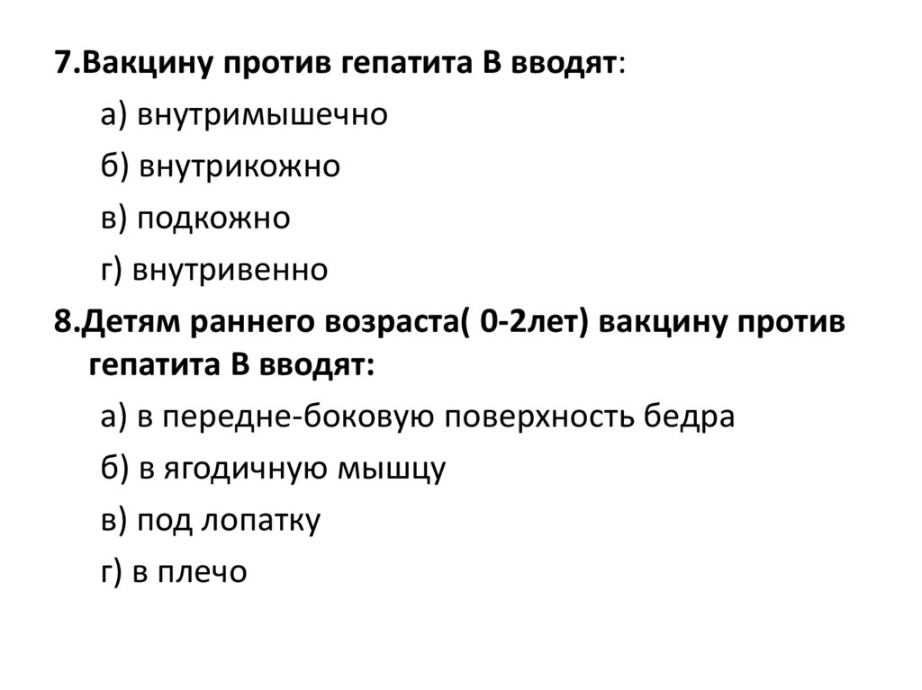 7.Вакцину против гепатита В вводят:а) внутримышечно