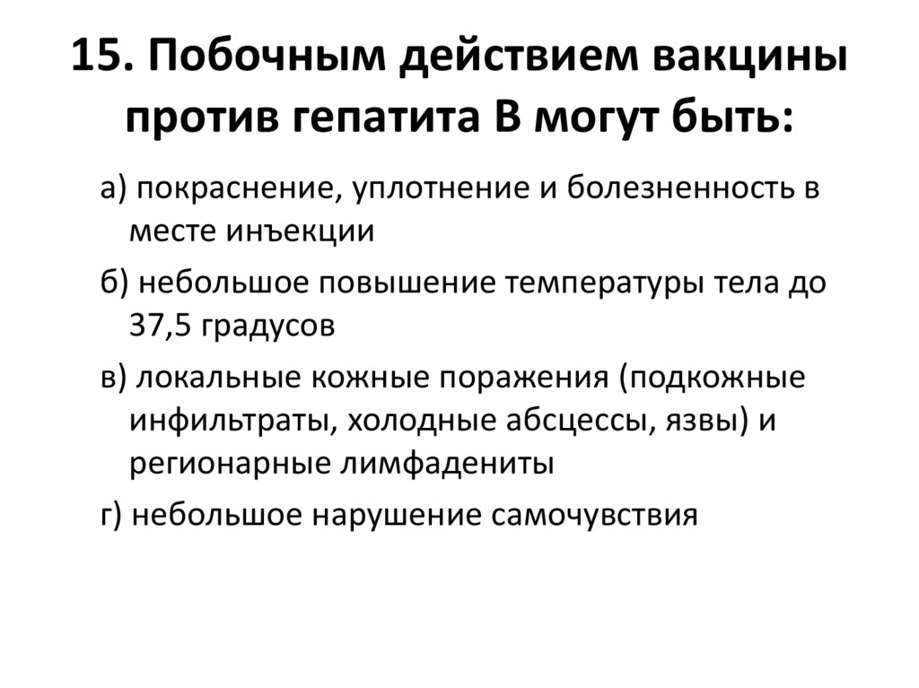 15. Побочным действием вакциныпротив гепатита В могут быть: