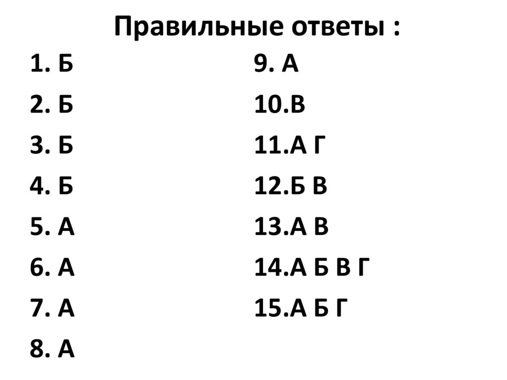 Правильные ответы :1. Б
