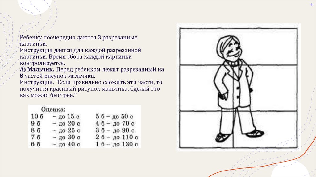 А) Мальчик. Перед ребенком лежит разрезанный на