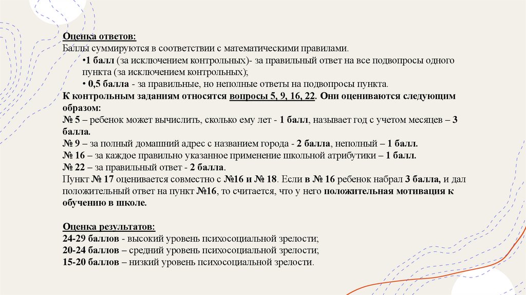 Оценка ответов:Баллы суммируются в соответствии с математическими правилами.