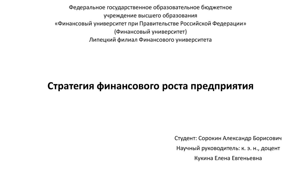 Стратегия финансового роста предприятия