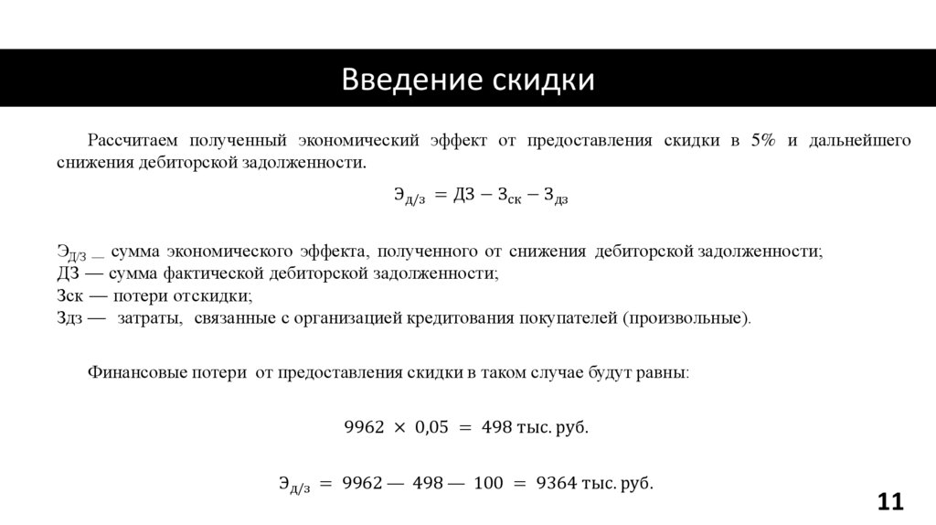 ЭД/З — сумма экономического эффекта, полученного от снижения дебиторской задолженности;