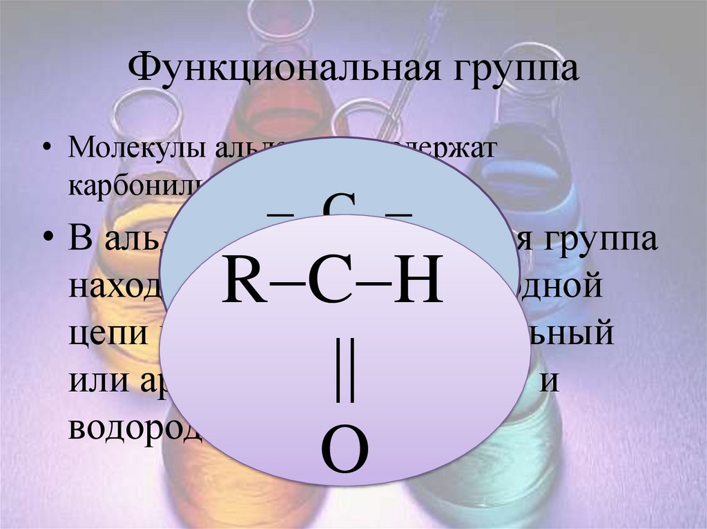 Функциональная группа• Молекулы альдегидов содержат