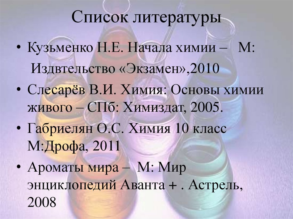Список литературы• Кузьменко Н.Е. Начала химии – М: