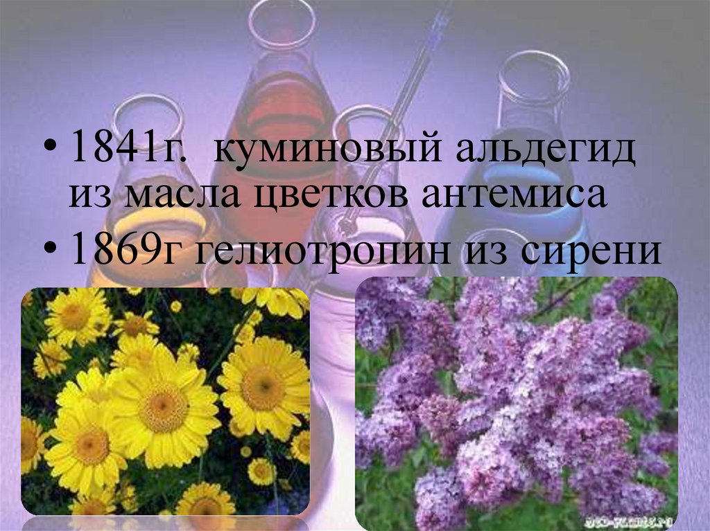 • 1841г. куминовый альдегидиз масла цветков антемиса