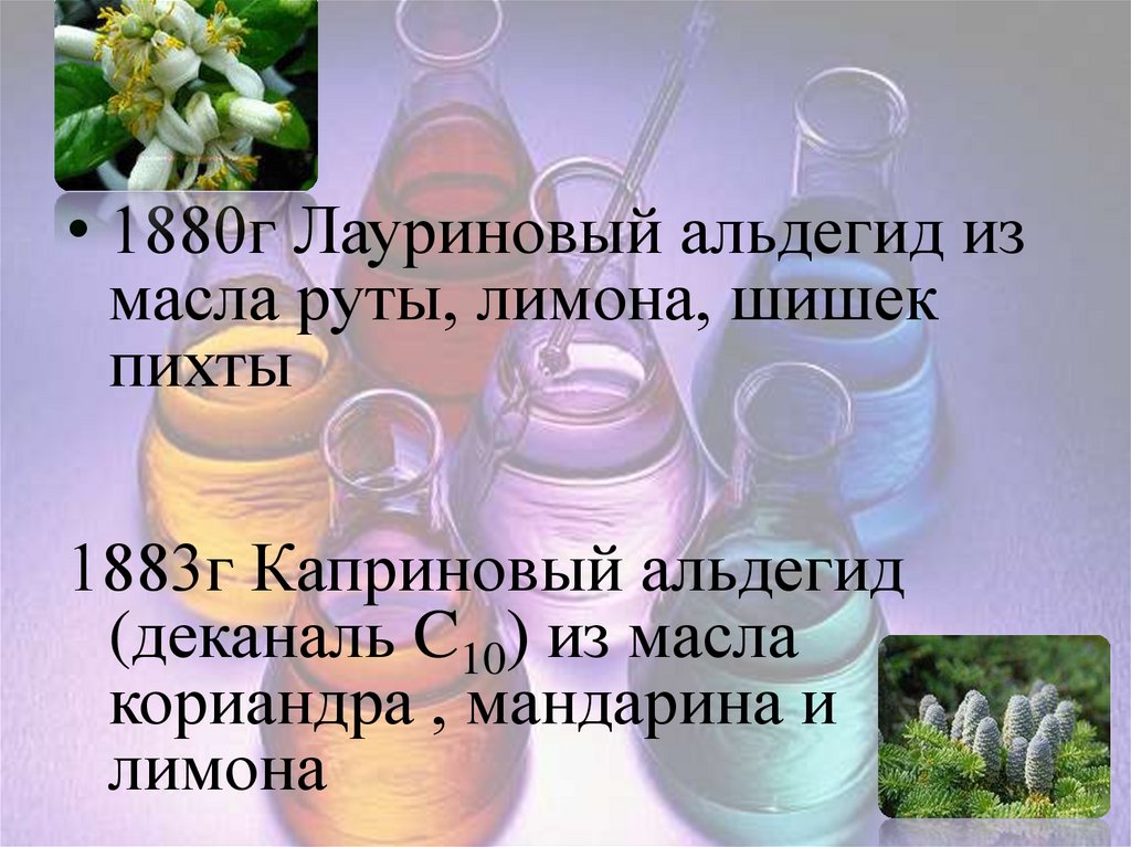• 1880г Лауриновый альдегид измасла руты, лимона, шишек