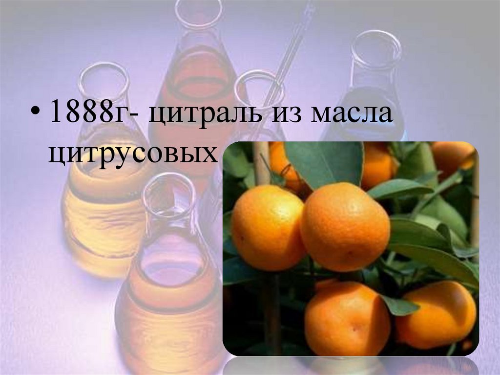 • 1888г- цитраль из маслацитрусовых
