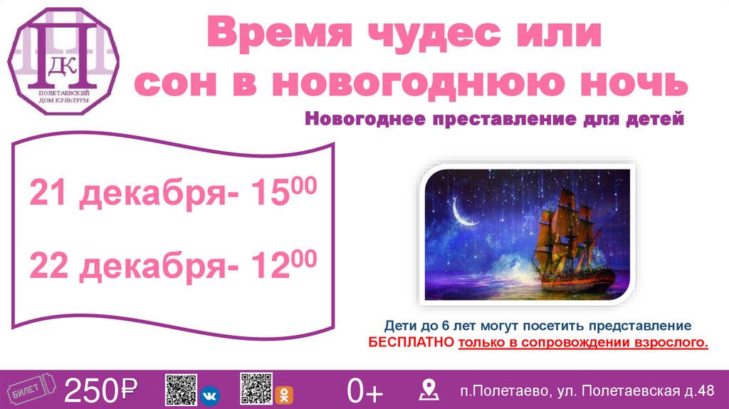 Дети до 6 лет могут посетить представление