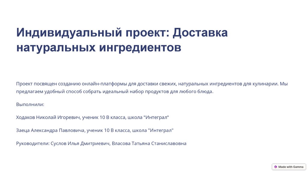 Проект посвящен созданию онлайн-платформы для доставки свежих, натуральных ингредиентов для кулинарии. Мы