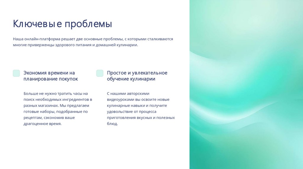 Ключев ы е проблемыНаша онлайн-платформа решает две основные проблемы, с которыми сталкиваются