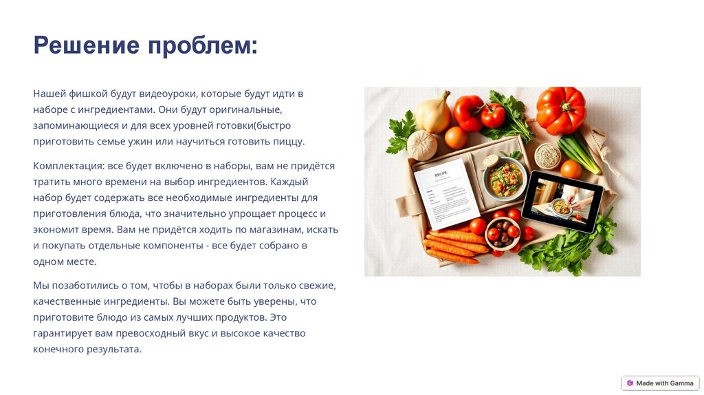 Решение проблем:Нашей фишкой будут видеоуроки, которые будут идти в