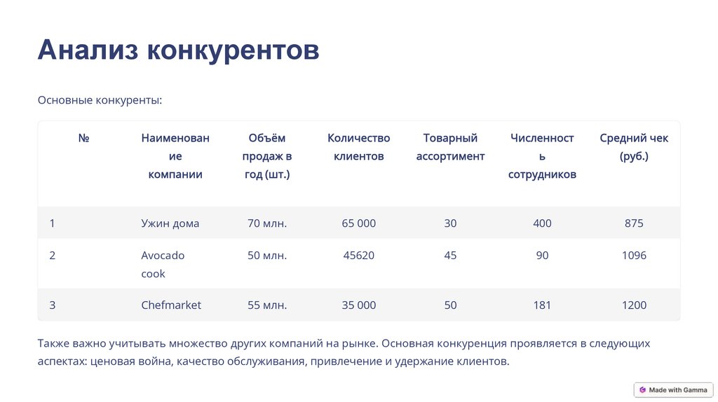 Анализ конкурентовОсновные конкуренты: