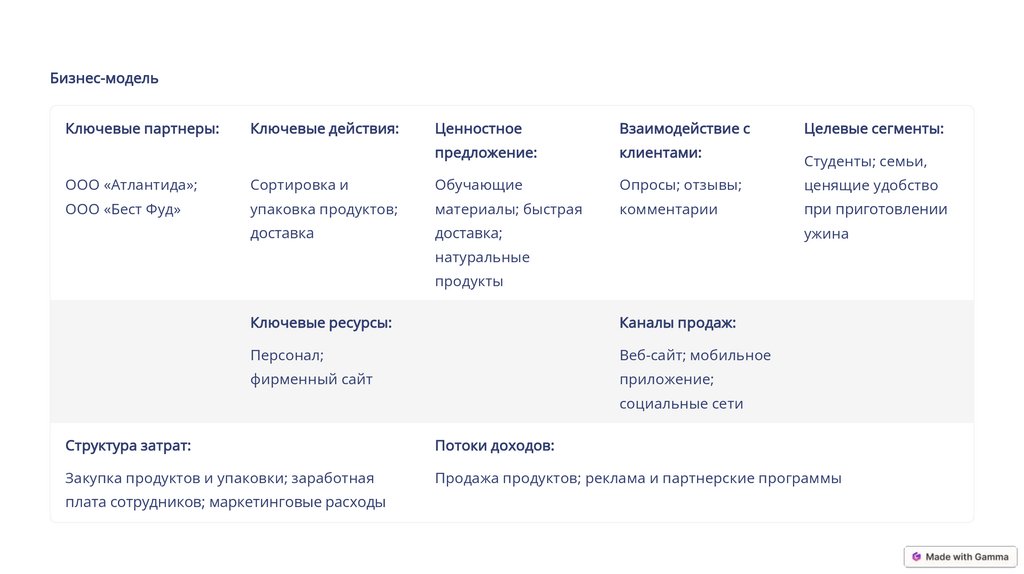 Бизнес-модельКлючевые партнеры: