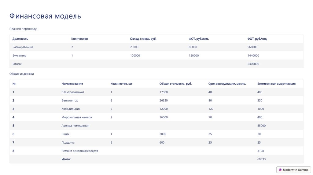 Ф инансовая модел ьПлан по персоналу:
