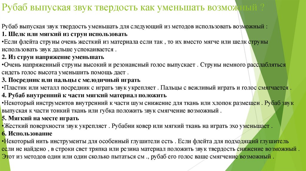 Рубаб выпуская звук твердость как уменьшать возможный ?Рубаб выпуская звук твердость уменьшать для следующий из методов использовать возможный :