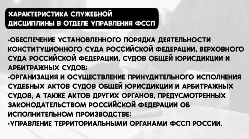 Правовое регулирование организации соблюдения служебной дисциплины в Отделе Управления Федеральной службы судебных приставов РФ