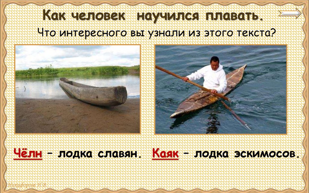 Как человек научился плавать.Что интересного вы узнали из этого текста?