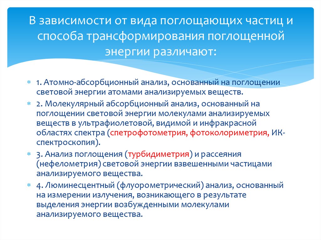 Анализ поглощения (турбидиметрия) и рассеяния (нефелометрия) световой