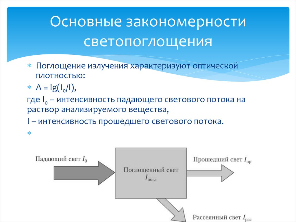 Основная зависимость, изучаемая в спектрофотометрии, — зависимость