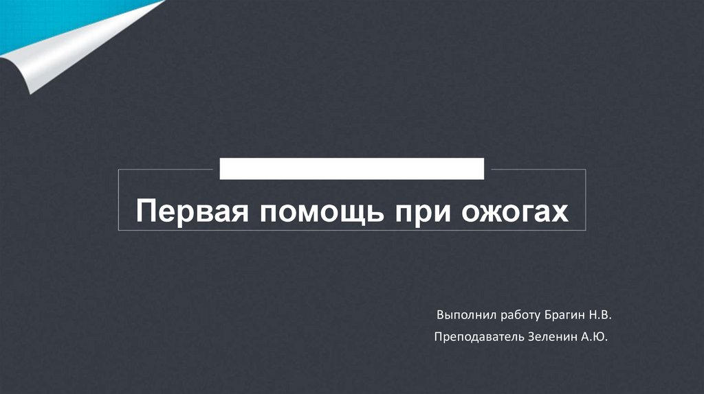 Первая помощь при ожогахВыполнил работу Брагин Н.В.