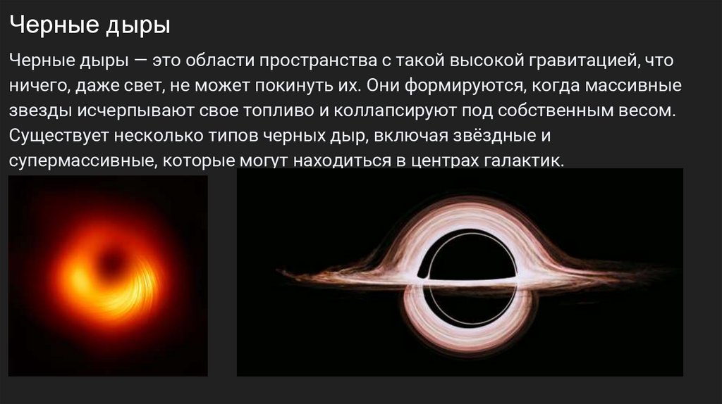 ничего, даже свет, не может покинуть их. Они формируются, когда массивные