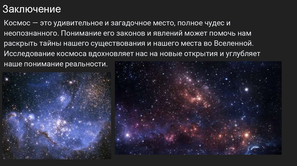 ЗаключениеКосмос — это удивительное и загадочное место, полное чудес и