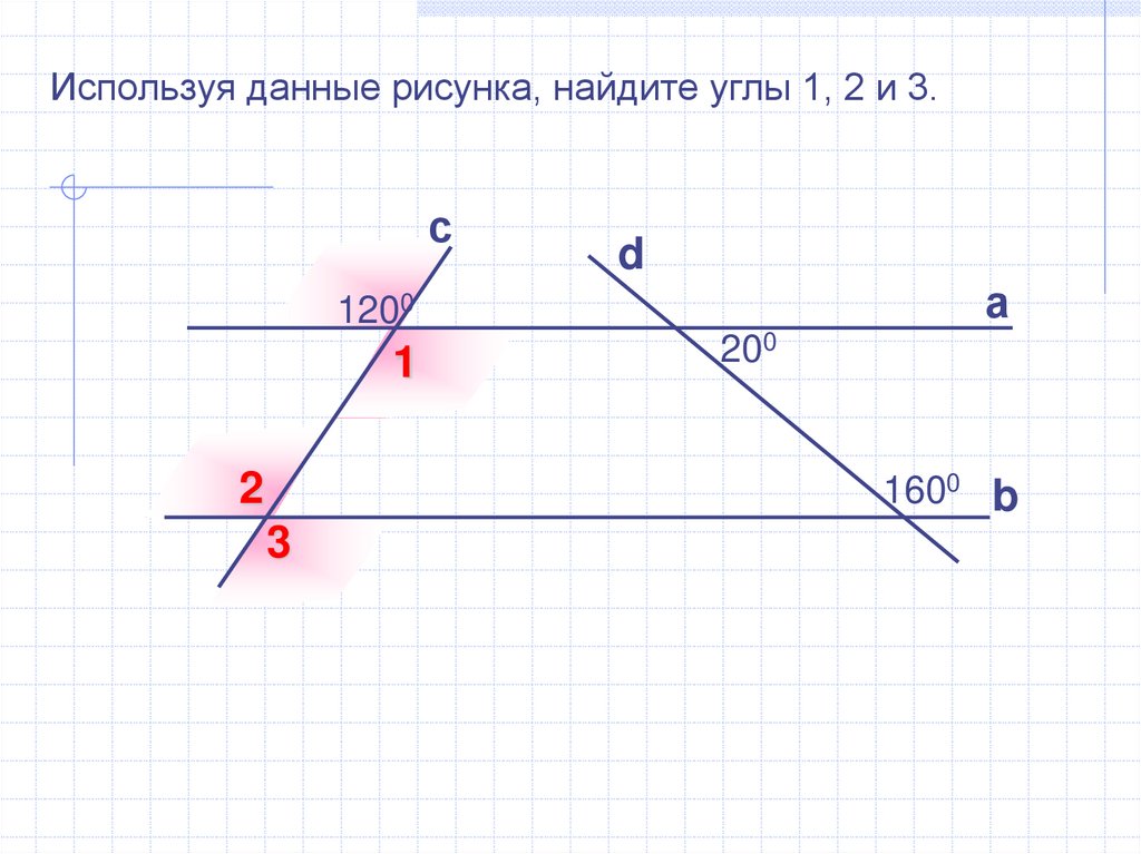 Используя данные рисунка, найдите углы 1, 2 и 3.с