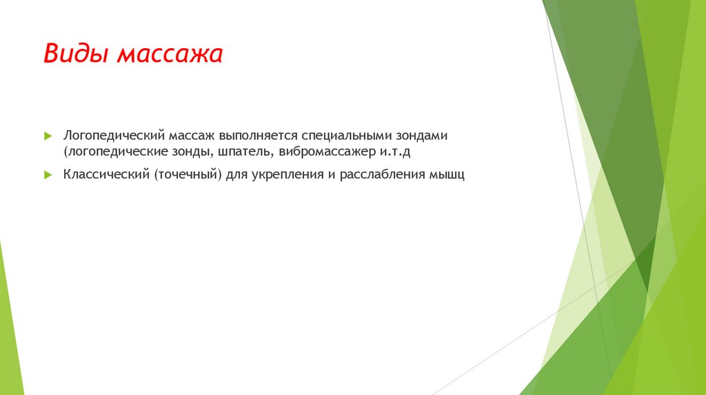 Виды массажаЛогопедический массаж выполняется специальными зондами