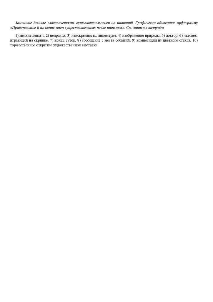 Замените данные словосочетания существительными на шипящий. Графически объясните орфограмму«Правописание Ь на конце имен существительных после шипящих». См. записи в тетради.