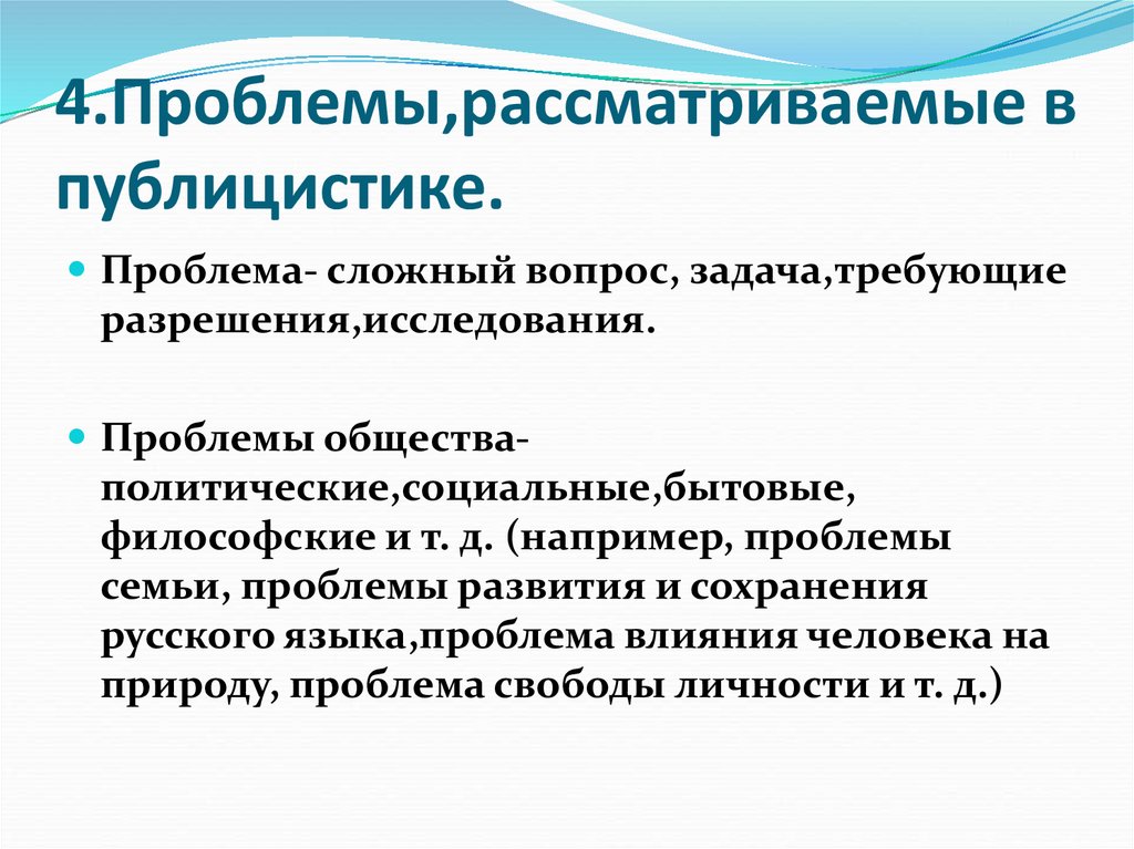 14. 4.Проблемы,рассматриваемые в публицистике.