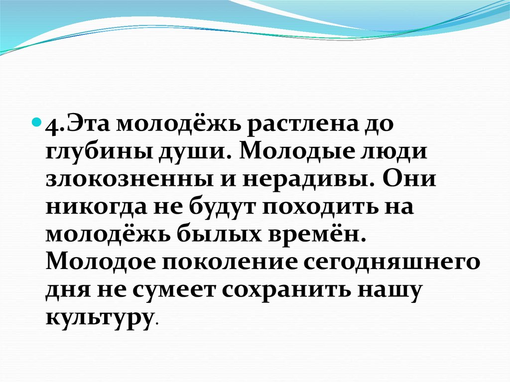 4.Эта молодёжь растлена доглубины души. Молодые люди
