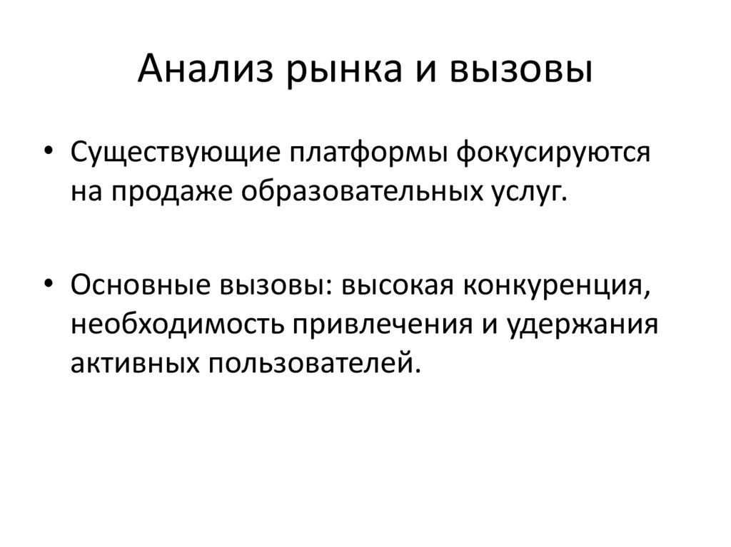 Анализ рынка и вызовы• Существующие платформы фокусируются