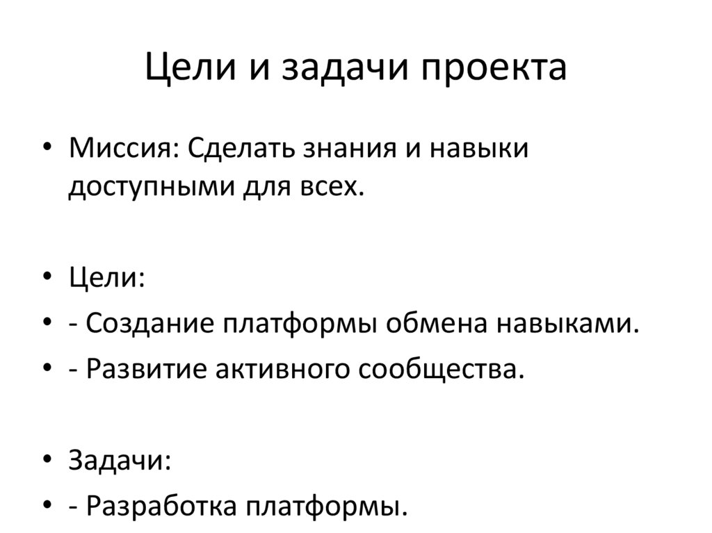 Цели и задачи проекта• Миссия: Сделать знания и навыки