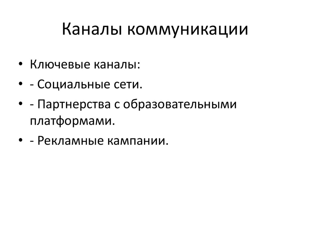 Каналы коммуникации• Ключевые каналы: